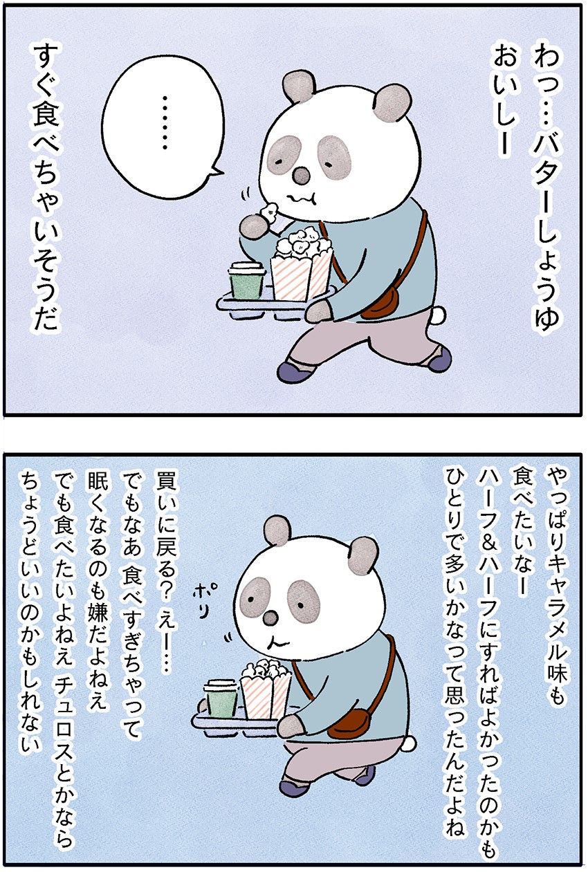 映画館に来たぐれいさん。何味のポップコーンを食べるか迷っているようです。